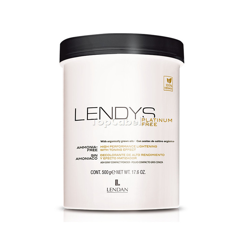 Lendys Platinum Free es una decoloración en polvo compacto sin amoniaco que cuida y trata la fibra capilar a la vez que logra aclarar el cabello de forma óptima. Compatible con todo tipo de técnicas, ideal para potenciar los colores ceniza o platinos.